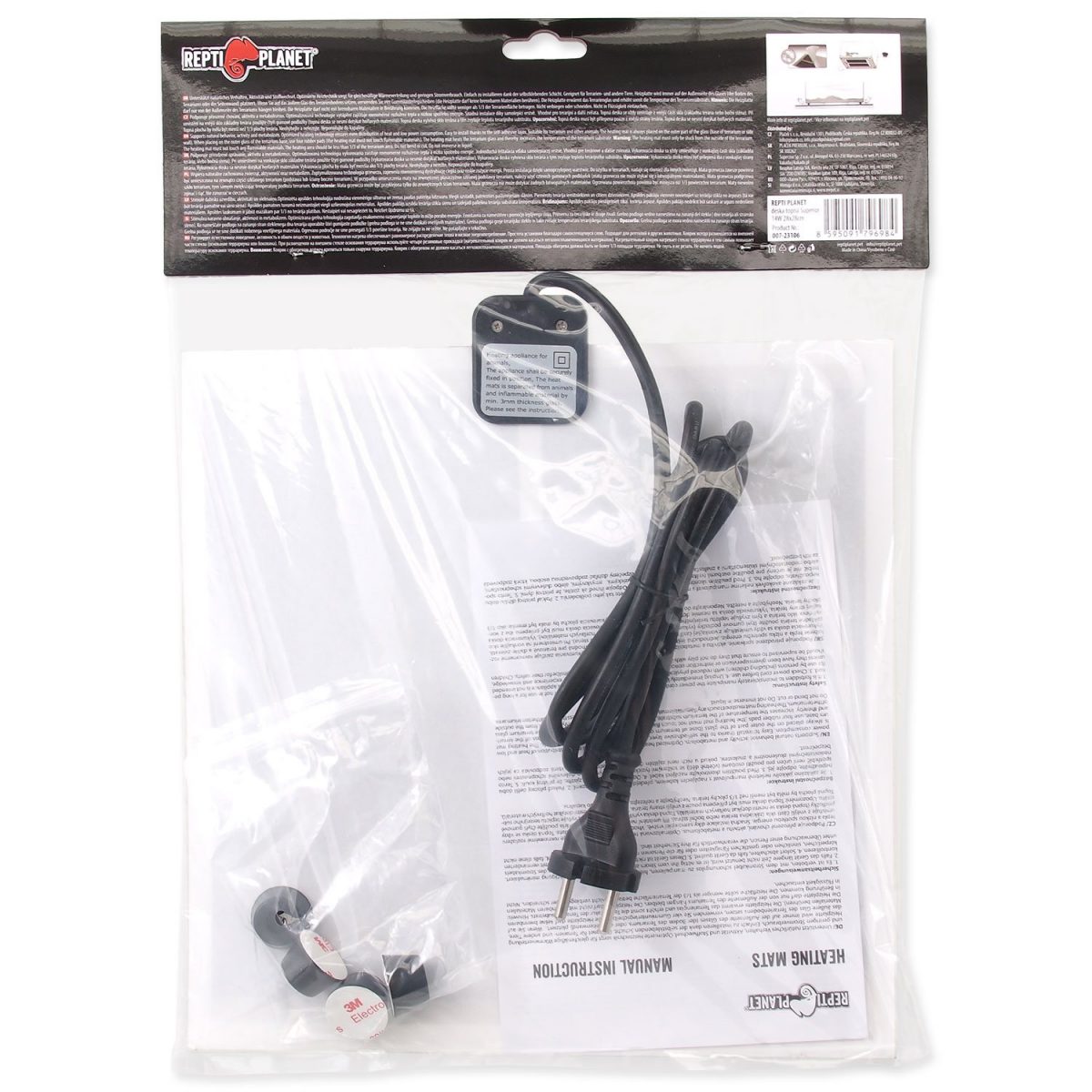 Terárium se zvedne pomocí samolepících nožek, které jsou součástí balení a z vnější strany nalepíte topnou desku.