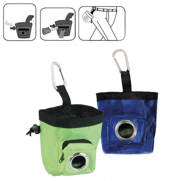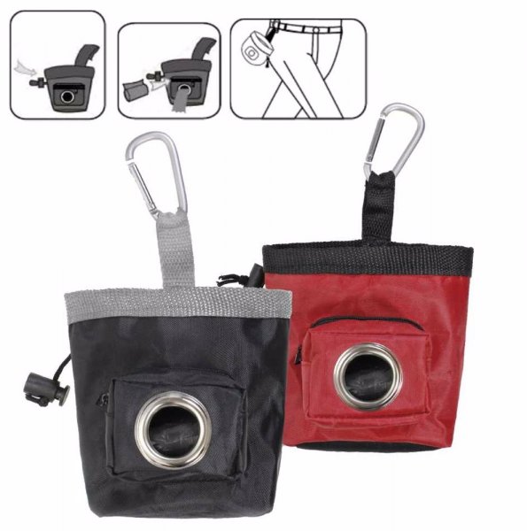 Výcviková pomůcka k odměňování při tréninku, pamlsky lze zajistit proti vysypání stažením.