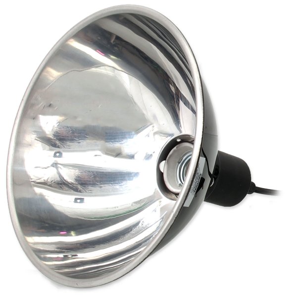 Hliníkový reflektor vytváří lokální výhřev a osvětlení terária.