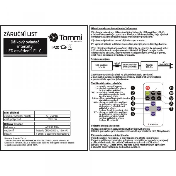 Dálkové ovládání intenzity akvarijního LED osvětlení LFL-CL s jedno i vícebarevným spektrem. Barva: Bílá