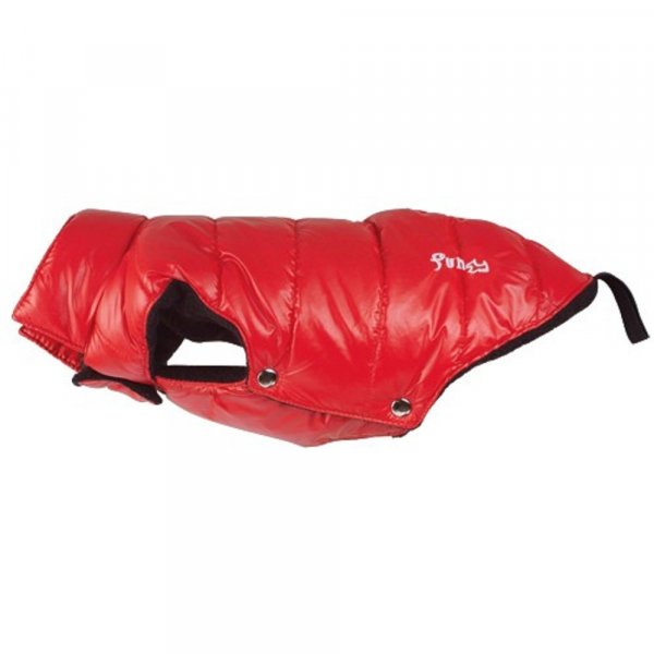 Udržuje psa v teple – ideální na zimu – zateplený prošívaný nepromokavý materiál – lesklá – barva červená.
