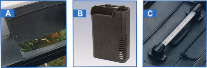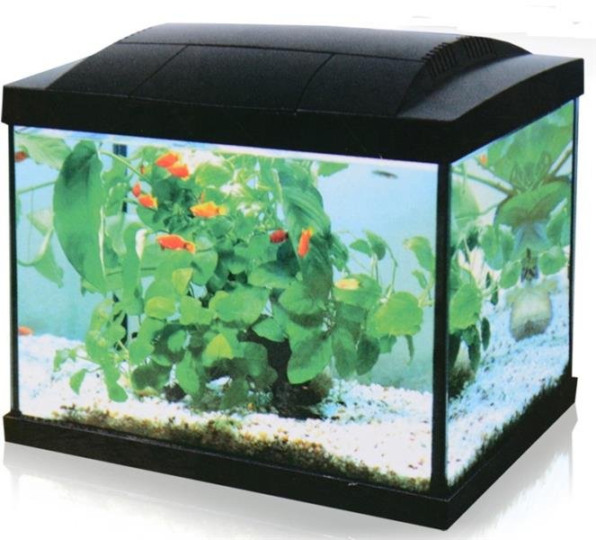 skleněné akvárium, LED osvětlení, 3 W, závěsný filtr včetně 3 náplní (výkon filltru: 200l/hod), odklopné víko