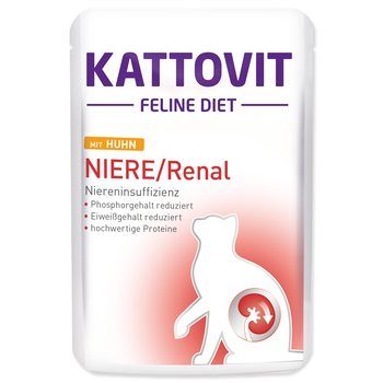 S Kattovit NIERE / RENAL - na rozdíl od konvenčních krmiv - pouze asi polovina energie je zajištěna bílkovinami.