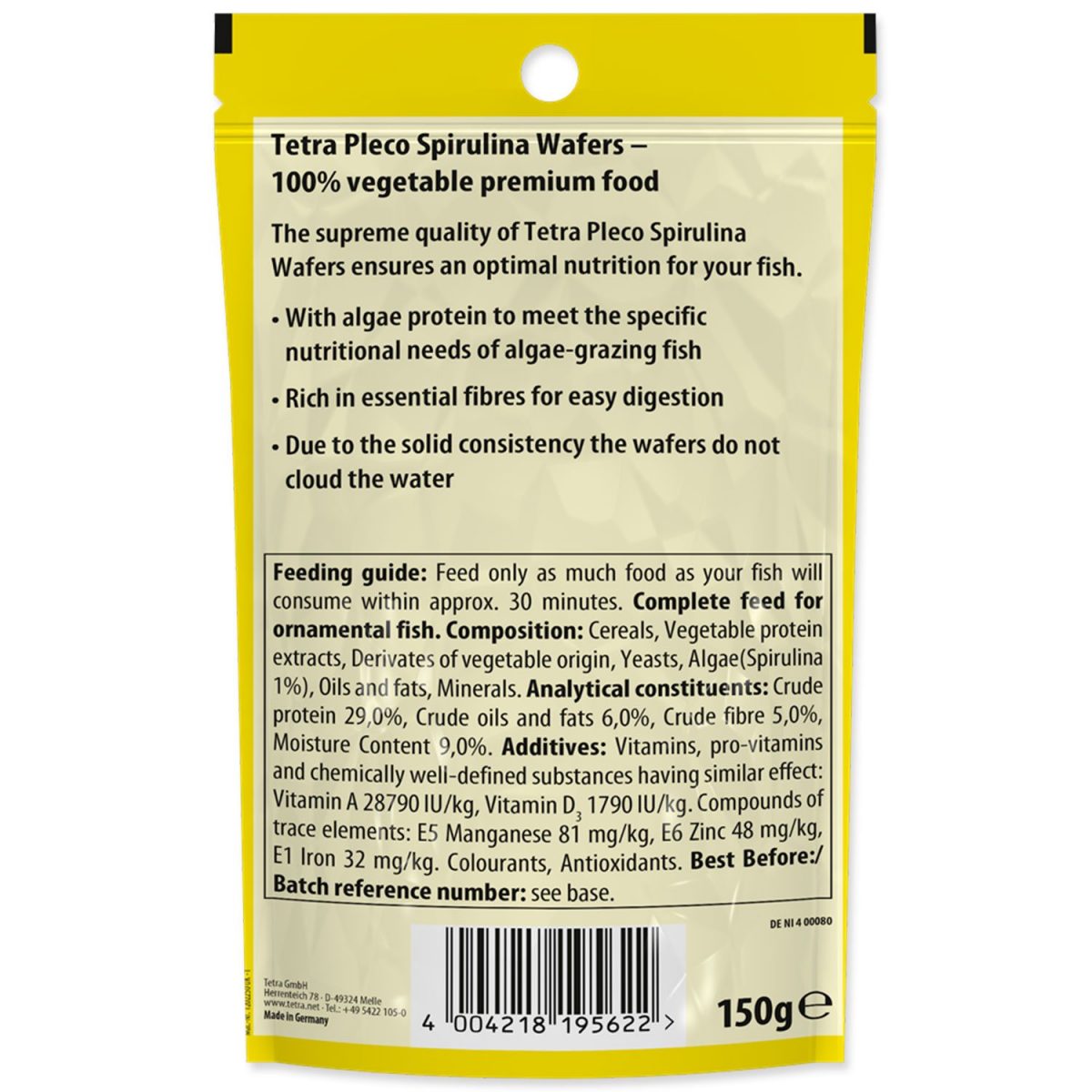 100% zeleninové krmivo pro ryby žijící u dna. Kompletní krmivo pro ryby žijící u dna.