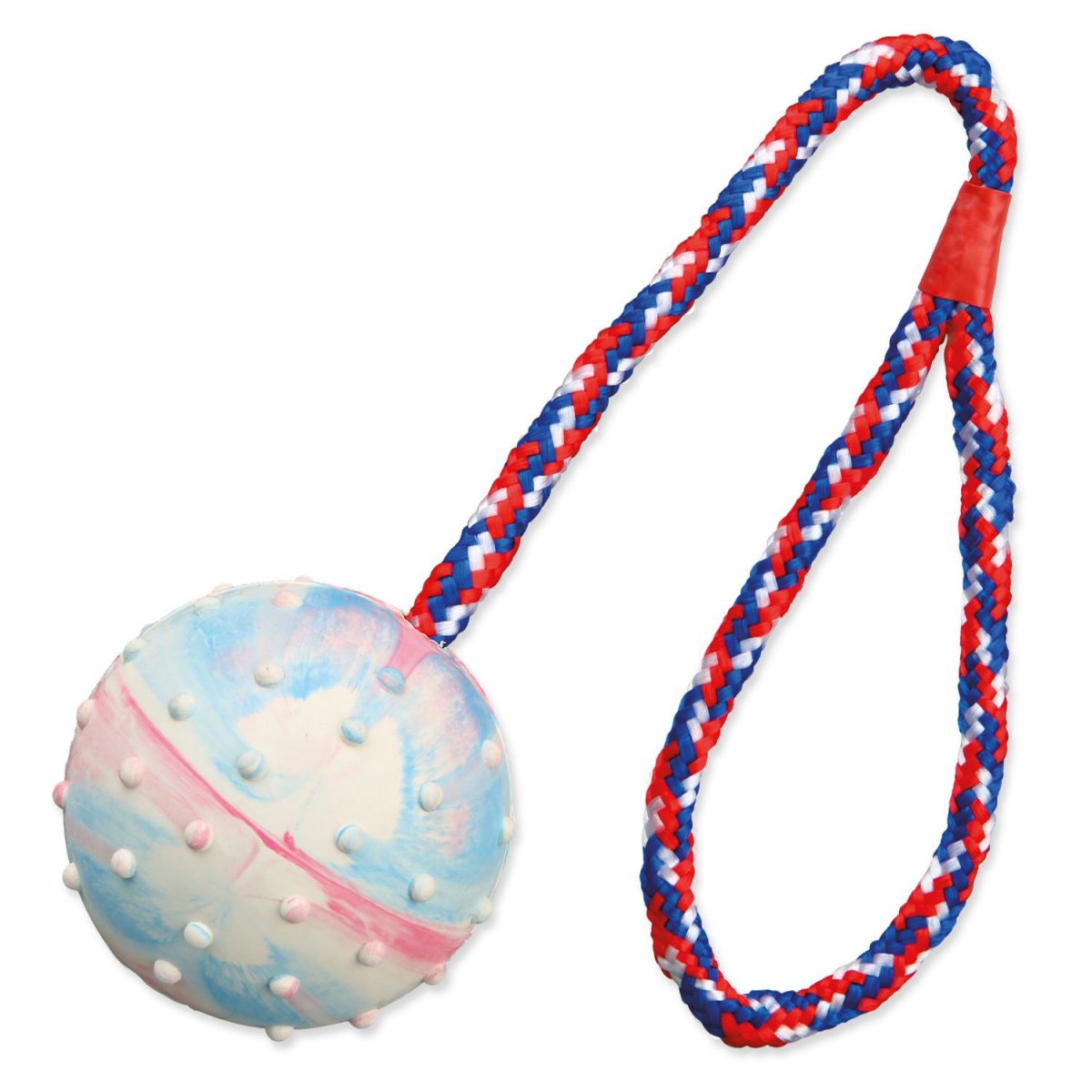 Sortiment hrbolatých míčů s provázkem na přetahování.