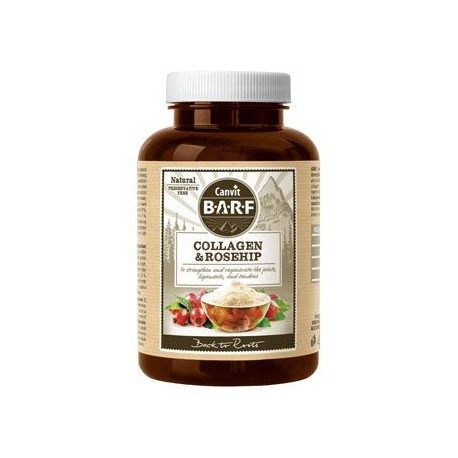 Canvit BARF Collagen & Rosehip je 100% přírodní zdroj vysoce stravitelného kolagenu a vitamínu C ze šípku pro intenzivní podporu zdraví kloubů a pohybového aparátu u psů a koček.