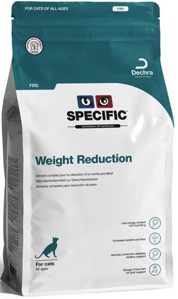 Úspěch redukčního programu je podmíněn motivací majitele a zkrmováním pouze diety SPECIFIC™ FRD/FRW Weight Reduction. Je-li majitel zvyklý kočku příležitostně odměňovat, měl by pro tento účel používat SPECIFIC™ FRW Weight Reduction.