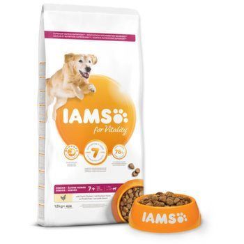 Krmivo IAMS for Vitality pro psí seniory velkých plemen je 100% kompletní a vyvážené, odborníky sestavené krmivo, které bude vašemu zvířeti chutnat a svědčit. Naše nová a vylepšená receptura pro psí seniory s čerstvým kuřecím masem je založena na pečlivě vybraných, kvalitních živočišných bílkovinách, které podporují sedm znaků zdravé vitality psa. Aby byl váš pes zdravý, aktivní a plný energie, obsahují naše lahodné receptury až 78 % živočišných bílkovin (z celkového obsahu bílkovin). Umožněte svému mazlíčkovi užívat si každý den naplno!