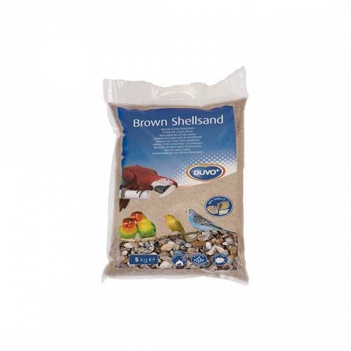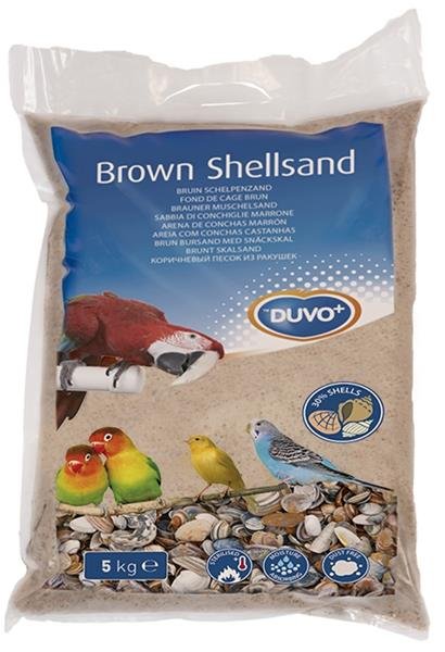 Hnědý přírodní písek pro ptáky od značky Duvo+ je obohacen o drť z mušlí a o přírodní anýzovou esenci.