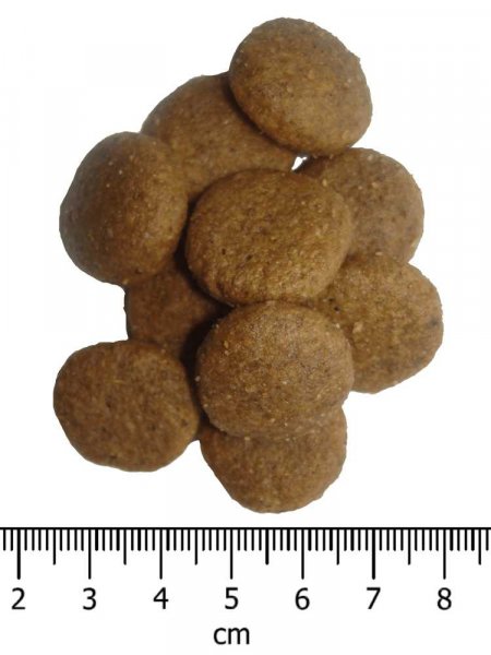 Složení: Čerstvé kuřecí maso (35 %), dehydratované kuřecí maso (25 %), rýže (15 %), oleje a tuky, hydrolyzát z kuřecích jater (5 %), rýžový protein, kvasnice, řepná dužina, chlorid sodný, monokalcium fosfát, chlorid draselný, inulin (FOS 500 mg / kg), glukosamin (350 mg / kg), manan-oligosacharidy (130 mg / kg), chondroitin (70 mg / kg), juka schidigera. Analytické složky: Hrubý protein 25 %, hrubý olej a tuky 16 %, mastné kyseliny omega 6: 3,60 %, EPA+DHA 920 mg / kg, hrubá vláknina 2,75 %, hrubý popel 8 %, vápník 1,35 %, fosfor 1,05 %. Nutriční doplňkové látky v 1 kg: Vit. A 18.000 MJ, vit. D3 1.800 MJ, vit. E (alfatokoferol) 250 mg, vit. C 100 mg, Železo (síran železnatý monohydrát) 68 mg, Jód (jodid draselný) 3,2 mg, Meď (síran měďnatý pentahydrát) 9 mg, Mangan (síran monohydrát) 6,8 mg, Zinek (oxyd) 135 mg, Selen (seleničitan sodný) 0,1 mg, Taurin 270 mg, L-karnitin 70 mg / kg.