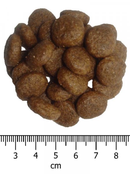 Složení: Čerstvé kuřecí maso (40 %), dehydratované kuřecí maso (25 %), rýže (15 %), oleje a tuky, hydrolyzát z kuřecích jater (5 %), rýžový protein, kvasnice, řepná dužina, polyfosfát sodíku, chlorid sodný, chlorid draselný, inulin (FOS 500 mg / kg), manan-oligosacharidy (130 mg / kg), juka schidigera. Analytické složky: Hrubý protein 26 %, hrubý olej a tuky 16 %, EPA+DHA 770 mg / kg, hrubá vláknina 2,5 %, hrubý popel 8 %, vápník 1,35 %, fosfor 0,95 %. Nutriční doplňkové látky v 1 kg: Vit. A 18.000 MJ, vit. D3 1.800 MJ, vit. E (alfatokoferol) 250 mg, vit. C 100 mg, Biotin 3,4 mg, Železo (síran železnatý monohydrát) 68 mg, Jód (jodid draselný) 3,2 mg, Meď (síran měďnatý pentahydrát) 9 mg, Mangan (síran monohydrát) 6,8 mg, Zinek (oxyd) 135 mg, Selen (seleničitan sodný) 0,1 mg, L-Karnitin 70 mg, Taurin 30 mg. Technologické přísady: přírodní antioxidanty bohaté na tokoferoly.