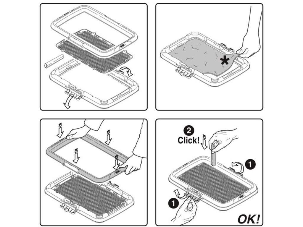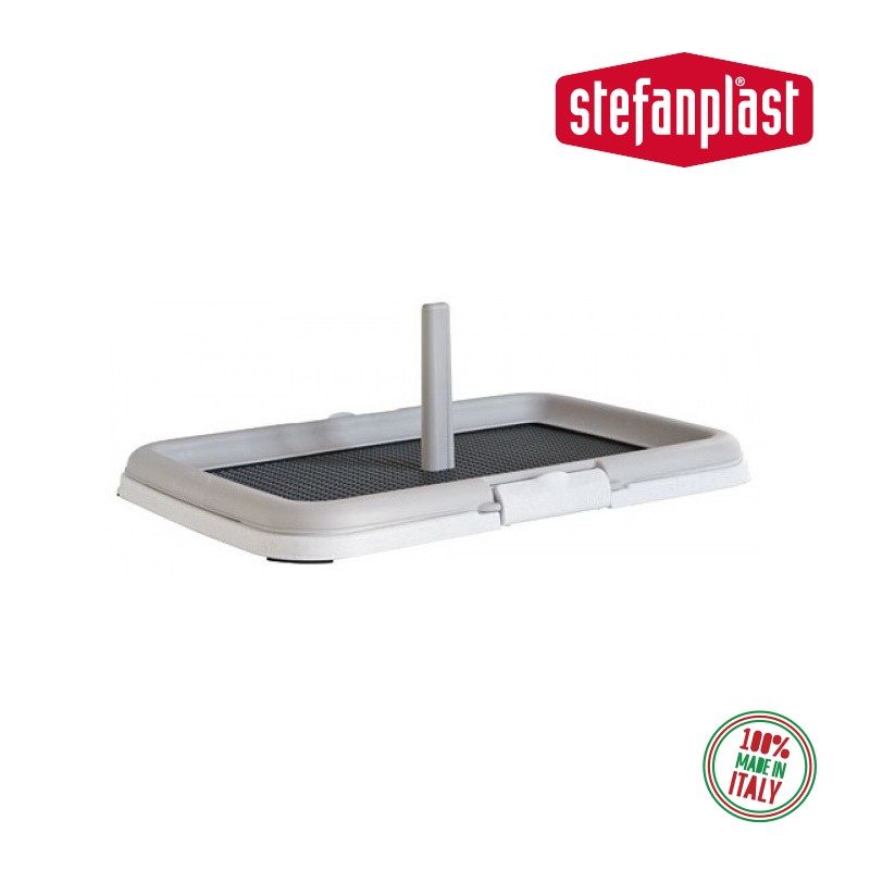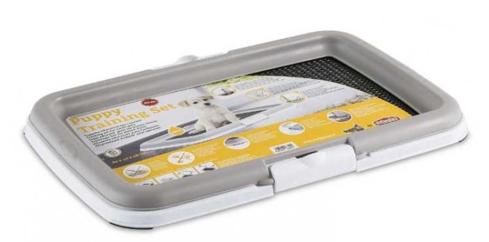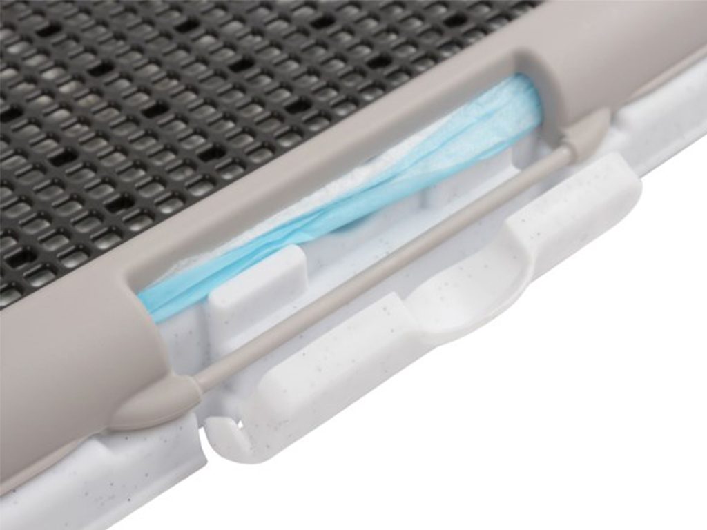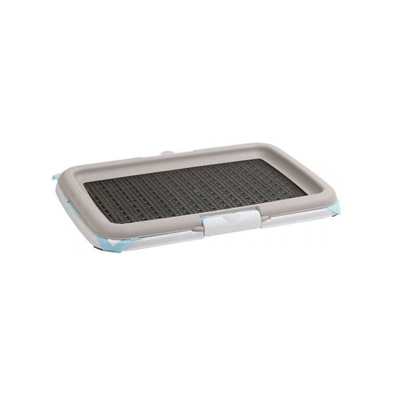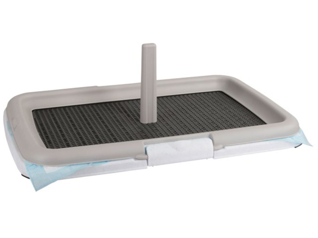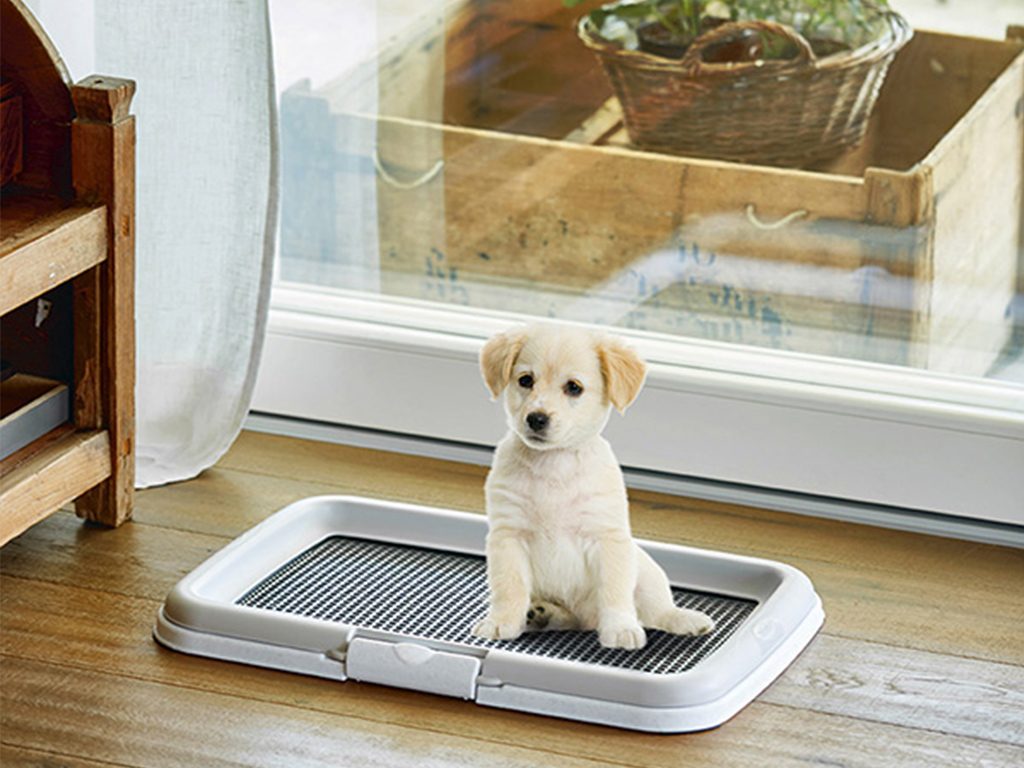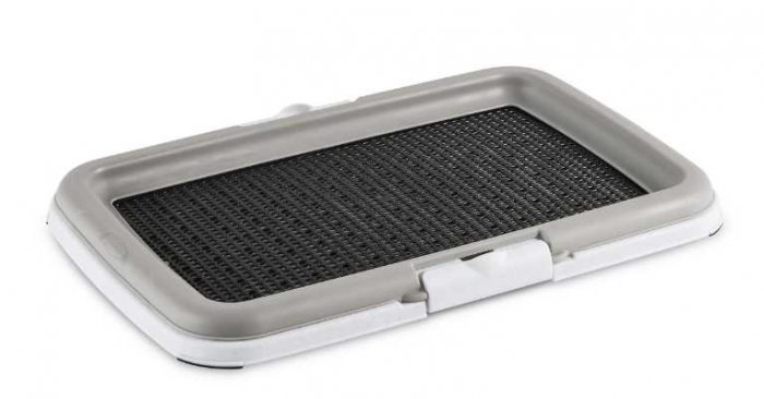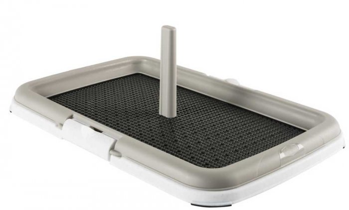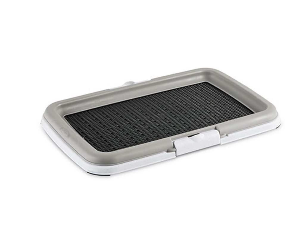 Rošt v podložce umožňuje udržet štěněti suché tlapky (absorbční podložka není součástí).