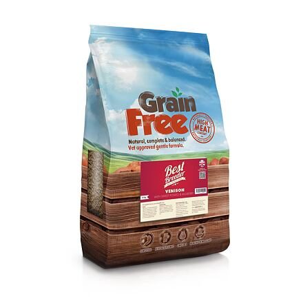 Zvěřina a losos 50 % (včetně čerstvě připravované zvěřiny 26 %, sušeného masa z lososa 19 %, lososového oleje 2,5 %, lososového vývaru 2,5 %), sladké brambory 27 %, brambory 7 %, sladký hrášek, bílkovina z hrášku, lněné semínko, řepná dužina, Omega 3, minerály, vitaminy, zeleninový vývar, moruše 7,5 g/kg, FOS 92 mg/kg, MOS 23 mg/kg