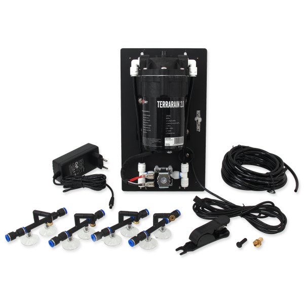 Výkonný rosící systém s příslušenstvím vhodný pro mnoho druhů plazů a obojživelníků včetně agam, gekonů, hadů, želv, leguánů, ještěrek, chameleonů, žab, krabů.