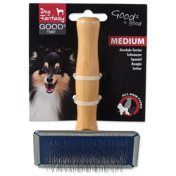 Jednostranný kartáč s příjemně tvarovanou dřevěnou rukojetí a jemnými drátěnými štětinami. Pro všechna plemena psů. Váš mazlíček bude mít čistší a lesklejší srst než kdykoli předtím! Extra jemné drátěné štětiny odstraní prach, odumřelou srst a podsadu. Určeno pouze pro zvířata.