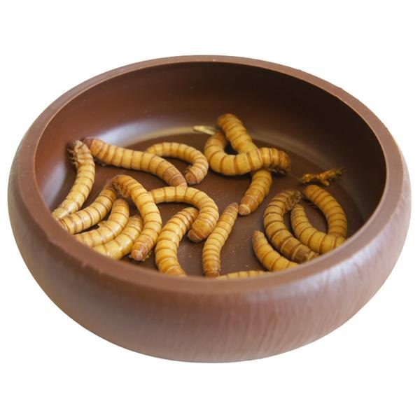 Miska má dovnitř zahnutý okraj, který zabraňuje úniku živých larev velikosti standard a mini. Pevný plast je snadno čistitelný (dá se mýt v myčce) a dezinfikovatelný. Rozměry: 2 × Ø 8 cm