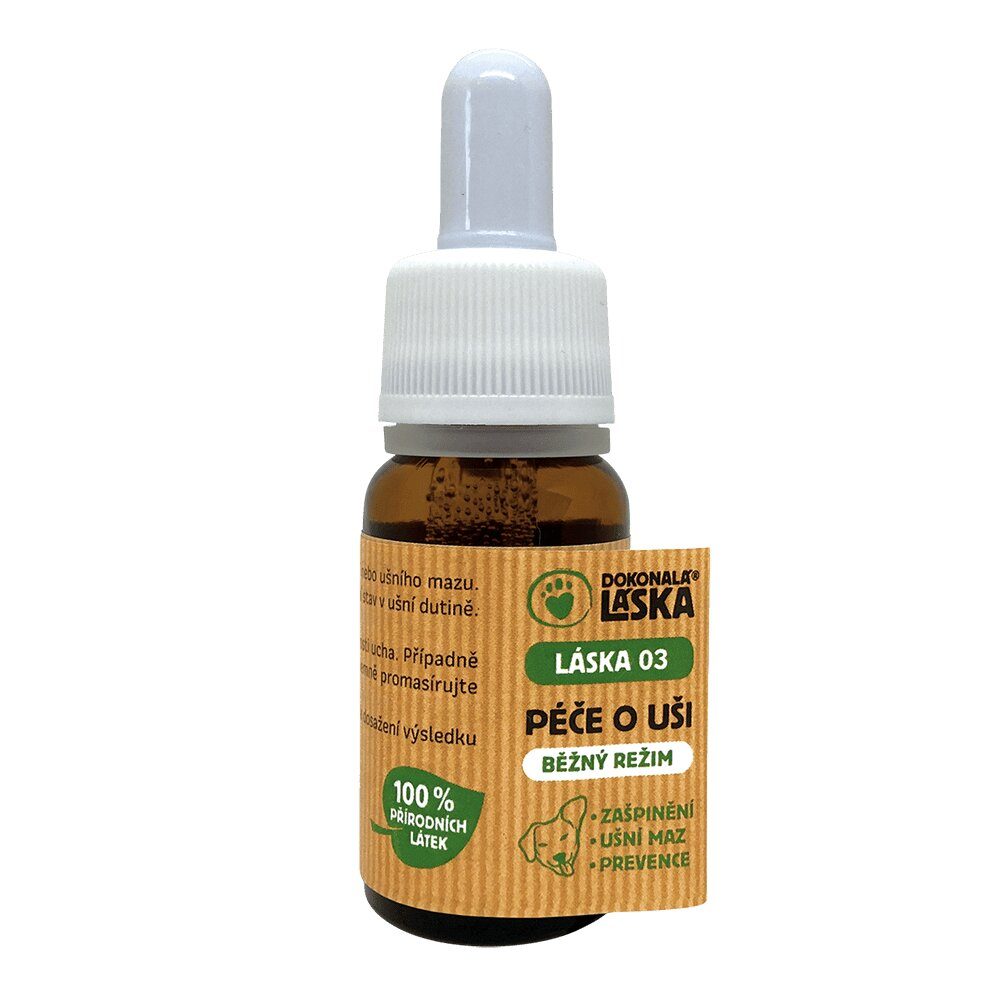Do ušního kanálku kápněte 1 až 4 kapky dle velikosti ucha. Případně vytřete ucho zevnitř tamponem s nakapanou směsí (až 10 kapek). Jemně promasírujte zevně kořen ucha a okolí.