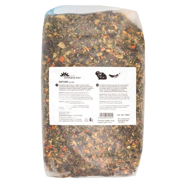 Kompletní směs krmiva speciálně pro králíčky - s nízkým obsahem tuků (low fat), a dále s obsahem vitamínů, léčivých bylin, obilovin a zeleniny (jako v přirozeném prostředí těchto zvířat)