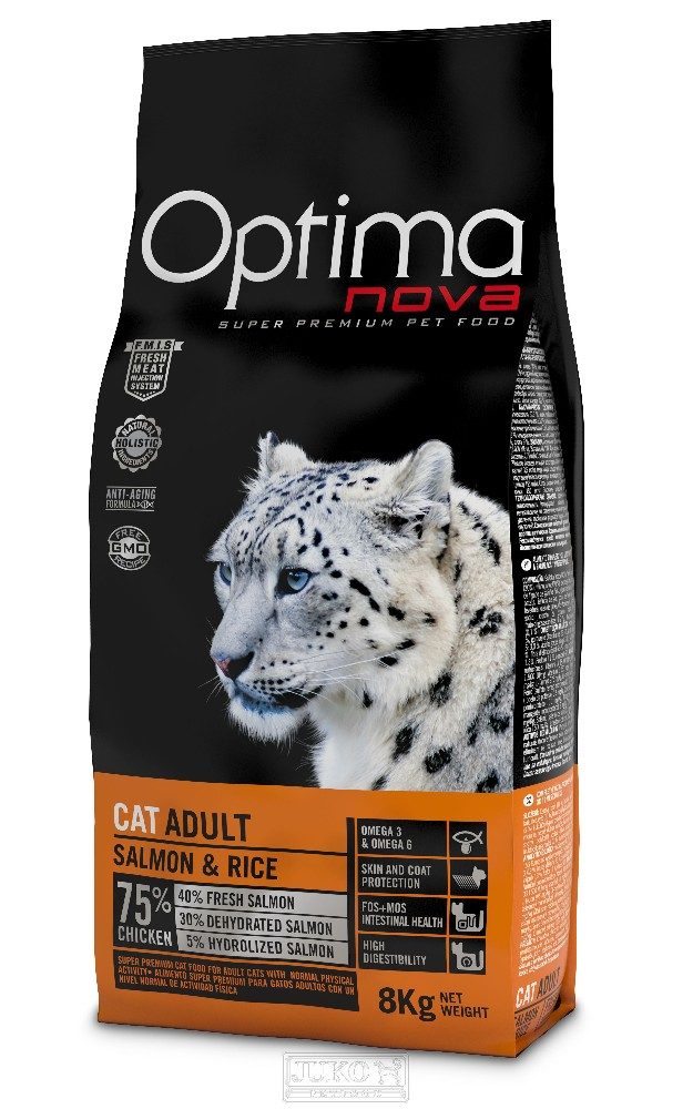 OPTIMAnova Cat Adult Salmon složené z kvalitních bílkovin a lehce stravitelných sacharidů v kombinaci s prospěšnými tuky. Krmivo obohacené o vitamíny, minerální látky a antioxidanty.