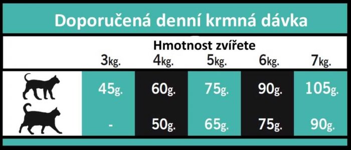 - OCHRANA KŮŽE A SRSTI - obsah zinku napomáhá regeneraci kůže, udržuje kůži zdravou a svěží. Mastné kyseliny kůži vyživují a přispívají k tomu, aby kočka měla zdravou a lesklou srst.