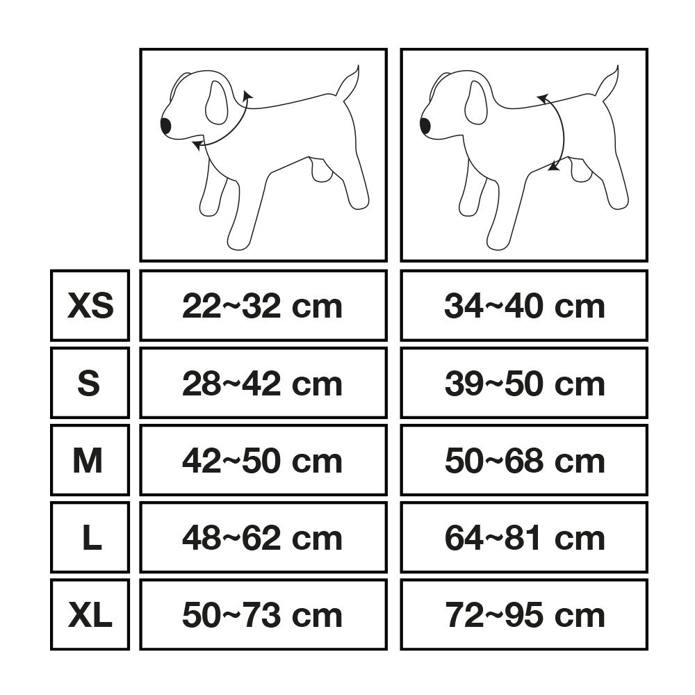 Velikost XL: určena pro psy s obvodem krku 50-73cm, obvodem těla 72-95cm