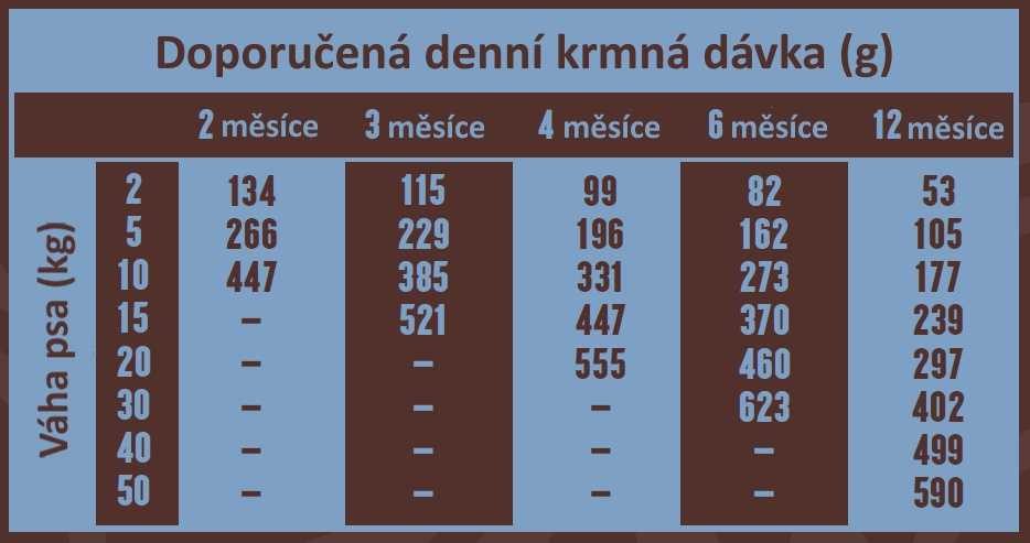 Krmivo je vhodné pro štěňata všech plemen a březí nebo kojící feny. Receptura s prémiovými přísadami tvoří základ pro perfektní růst a vývoj kostí a svalů. Vývoji silných svalů a kostí napomáhá přidání čerstvých bílkovin. Rovnováha vitaminů-minerálů posiluje imunitní systém, pomáhá vytvořit odolnější ochranou kůži, srst a sliznice.
