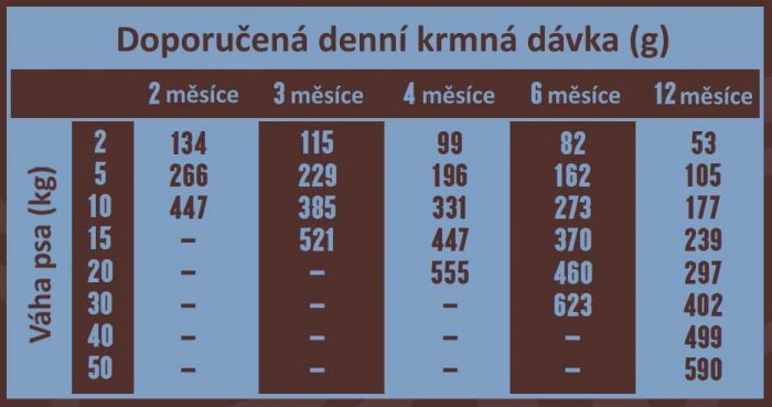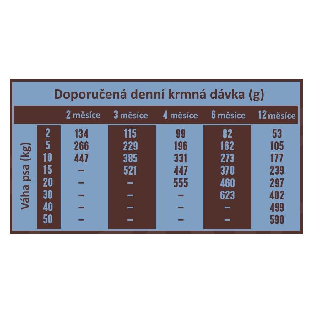 Krmivo je vhodné pro štěňata všech plemen a březí nebo kojící feny. Receptura s prémiovými přísadami tvoří základ pro perfektní růst a vývoj kostí a svalů. Vývoji silných svalů a kostí napomáhá přidání čerstvých bílkovin. Rovnováha vitaminů-minerálů posiluje imunitní systém, pomáhá vytvořit odolnější ochranou kůži, srst a sliznice.
