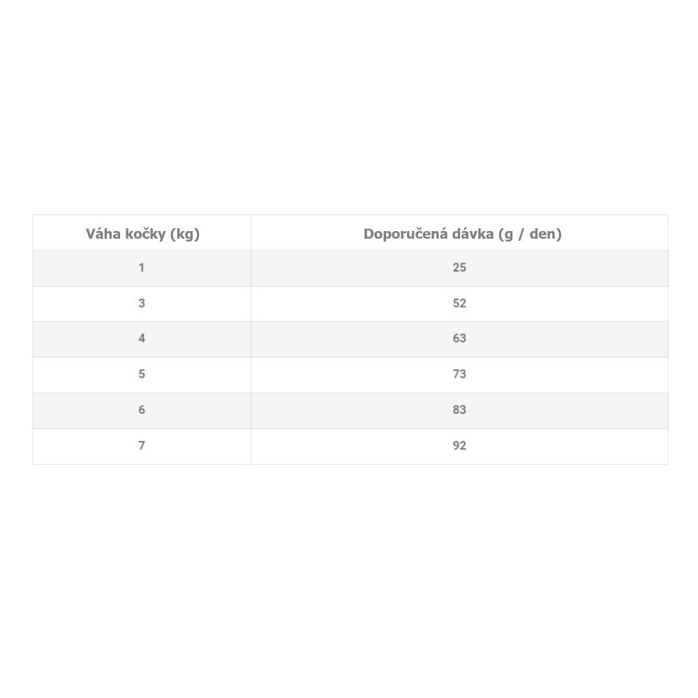 Kompletní krmivo pro dospělé kočky od 2 měsíců s krůtím a kuřecím masem jako jediným zdrojem živočišných proteinů. Hydrogen sulfát sodný pomáhá snížit pH moči a omezuje tvorbu většiny druhů močových kamenů, zatímco juka pomáhá snížit fekální zápach.
