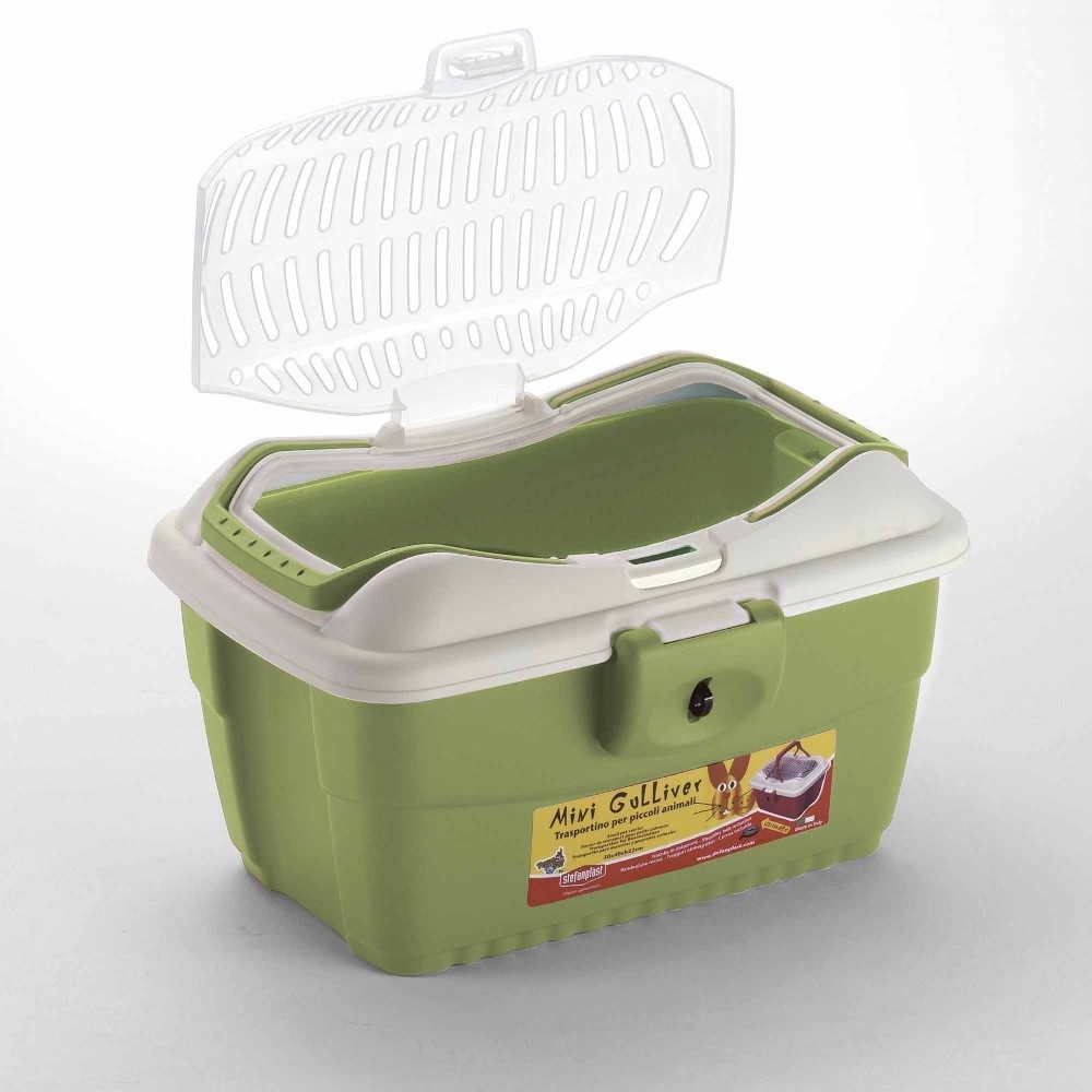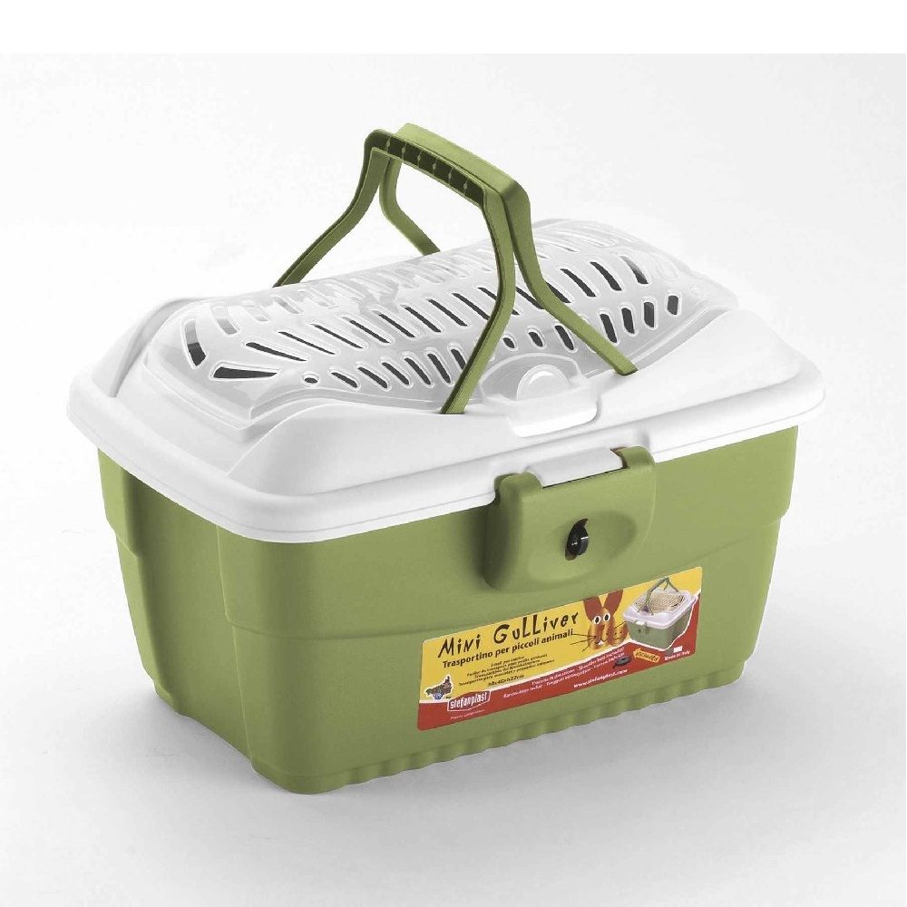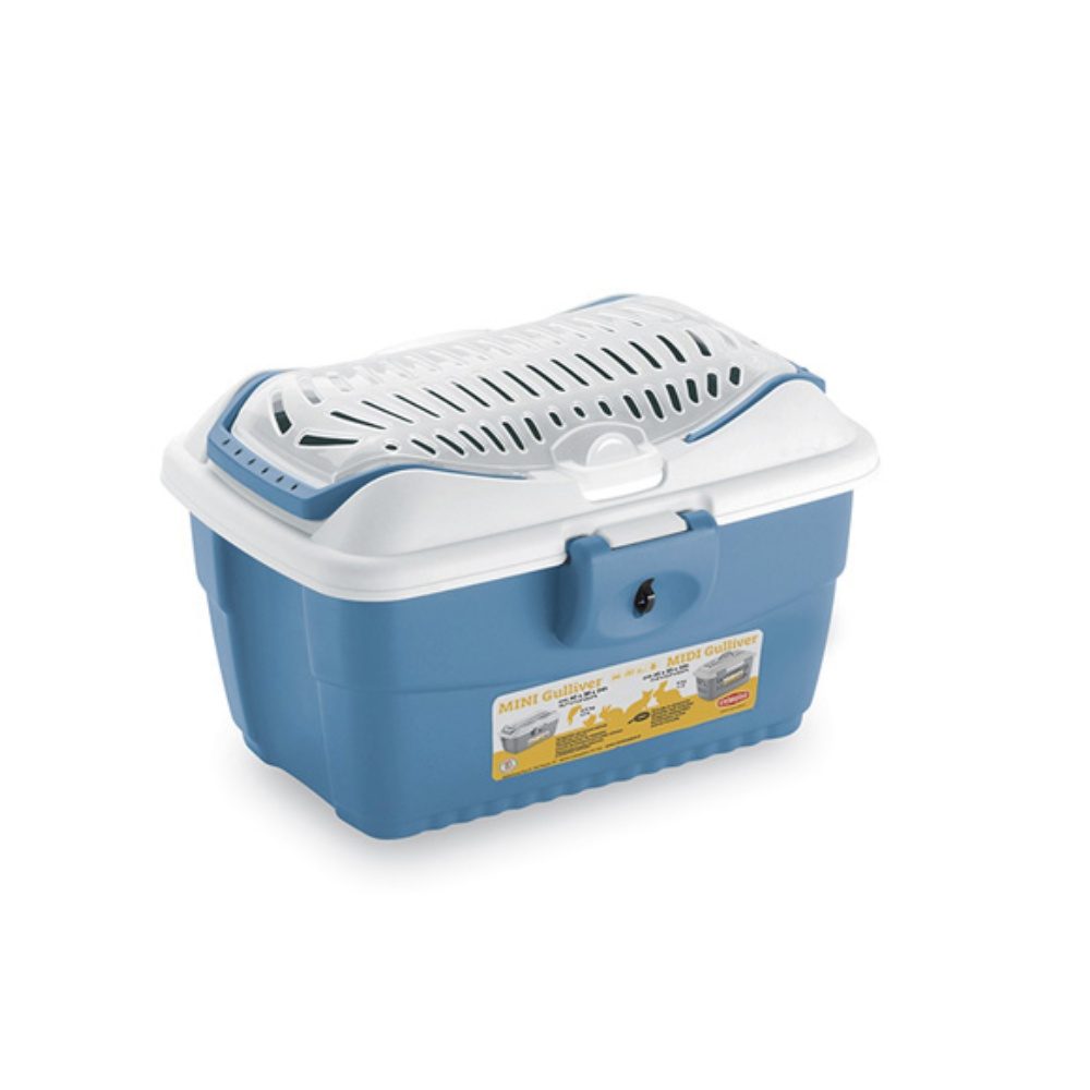 Mini Gulliver je velice kvalitní plastová přepravka pro hlodavce (zakrslý králíček, morče, apod.....). Výhodou je bezpečné zajištění dvířek a popruh pro snazší přenášení. Horní část přepravky je otevírací, aby byla manipulace se zvířetem snazší.