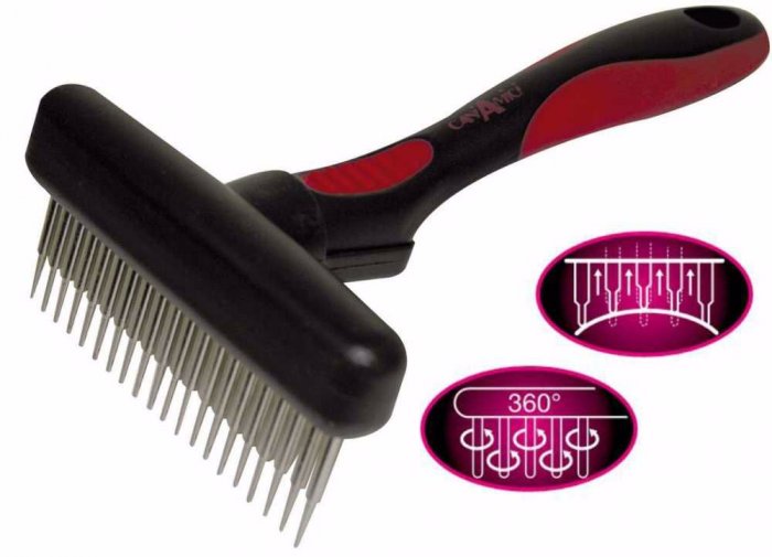 otočné zuby o 60° nevytrhávají zamotanou srst, ale jednoduše a pohodlěn ji rozčesají.