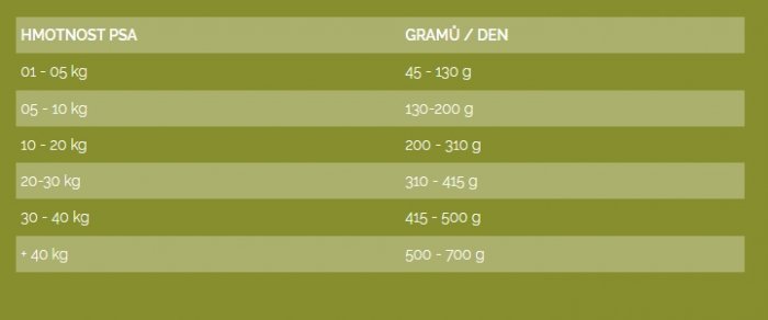 Složení: Maso a živočišné výrobky, cereálie, rostlinné produkty vedlejšího původu, oleje a tuky, luštěniny, minerální látky.