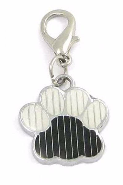přívěšek ve tvaru černobílé tlapky Pomocí karabiny může připnout kdekoliv