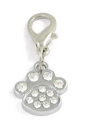 přívěsek ve tvaru tlapky s ozdobnými kamínky pomocí karabiny můžete připnout kdekoliv