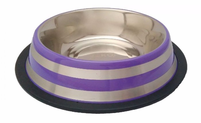 Nerezová miska, opatřená silikonovým kroužkem, je více stabilní a neklouže po podlaze.