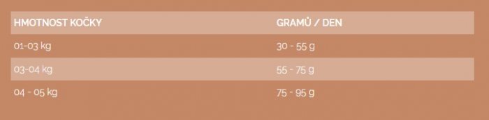 Váha kočky - gramů na den