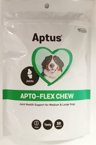 Obsahuje glukosamin, MSM, chondroitin sulfát, kyselinu hyaluronovou, vit. C a mangan k posílení podpůrného účinku. APTO-FLEX CHEW je vhodný pro střední a velké psy,