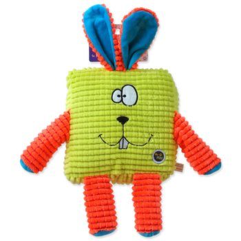 Hračka je ve všech místech měkká a obsahuje volné prvky (uši, ruce, nohy), které vybízí zvíře ke hře. V těle hračky je pískadlo.