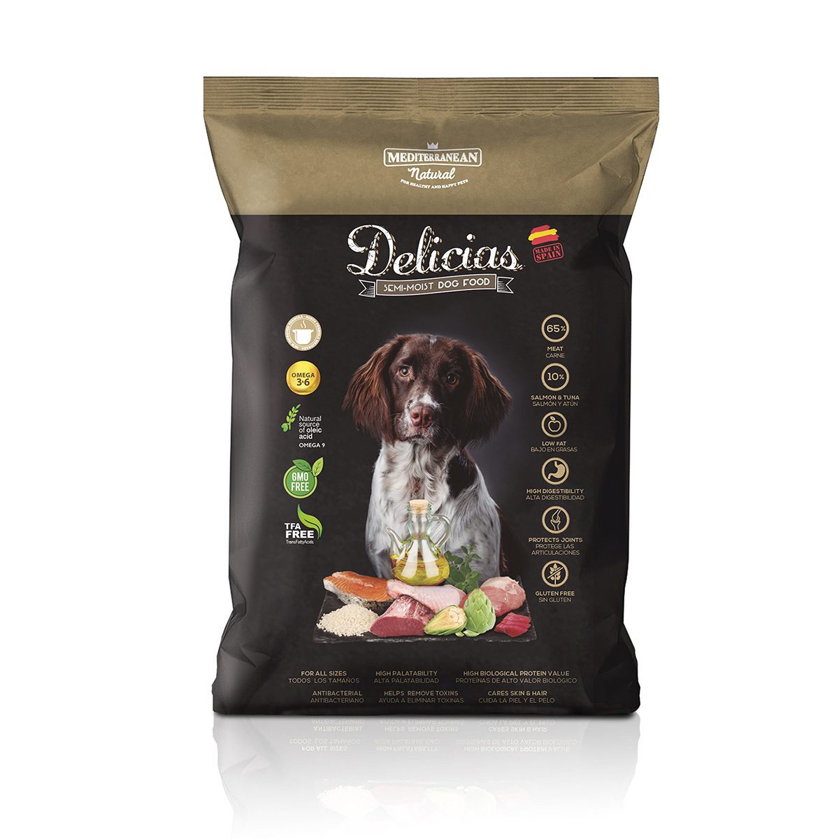 Soft krmivo pro psy pro dospělé psy je speciálně vyvinuto pro malé a střední plemena a pro ty psy, kteří mají potíže s konzumací suchého krmiva. Je vyrobeno z 60% čerstvého masa (kuřecí, šunka serrano, vepřová játra, jehněčí a hovězí maso) a 10% lososa a tuňáka.