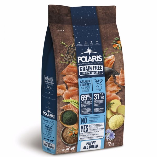 Vykostěný losos (25 %), bramborové vločky (18 %), sušené vepřové (17 %), sušená krůta (15 %), hrách (12 %), drůbeží tuk, bramborový škrob, sušené řepné řízky (4 %), hydrolyzovaná živočišná bílkovina, kvasnice (3 %), vitaminy a minerály, lososový olej (0,5 %), psyllium (0,5 %), extrakt z yuccy schidigery (0,2 %), spirulina (0,2 %), ActiveMOS (0,2 %), MACROGARD (0,1 %), rakytník (0,1 %), bylinky (rozmarýn, tymián, petržel, 0,1 %), chondroitin sulfát (270 mg/kg), glukosamin sulfát (200 mg/kg).