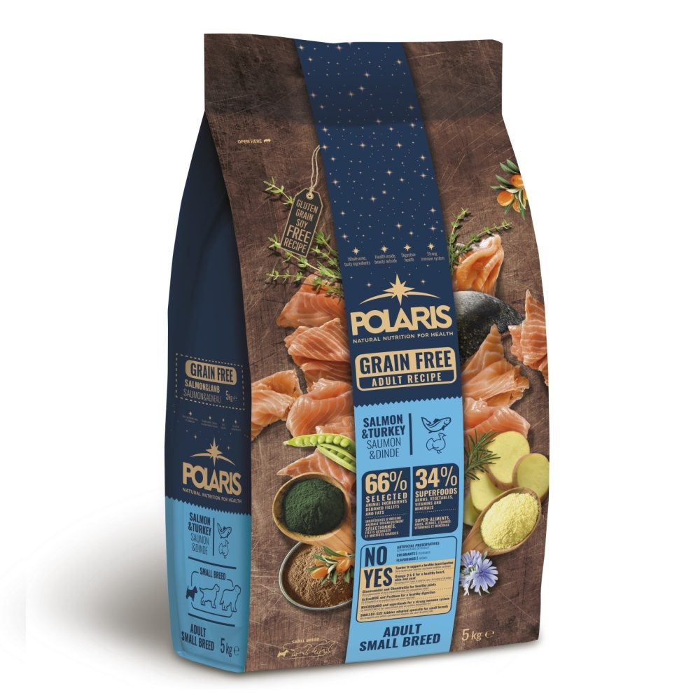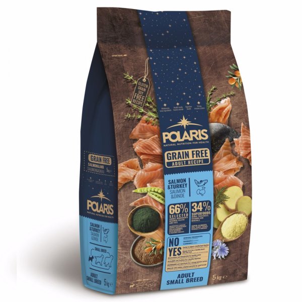 Vykostěný losos (25 %), sušené vepřové (24 %), bramborové vločky (20 %), hrách (12 %), drůbeží tuk, bramborový škrob, sušená krůta (4 %), hydrolyzovaná živočišná bílkovina, sušené řepné řízky (3.5 %), kvasnice (3 %), lněné semínko (1,5 %), hrachová bílkovina, vitaminy a minerály, lososový olej (0,5 %), psyllium (0,5 %), extrakt z yuccy schidigery (0,2 %), spirulina (0,2 %), ActiveMOS (0,2 %), MACROGARD (0,1 %), rakytník (0,1 %), bylinky (rozmarýn, tymián, petržel, 0,1 %), chondroitin sulfát (270 mg/kg), glukosamin sulfát (200 mg/kg).