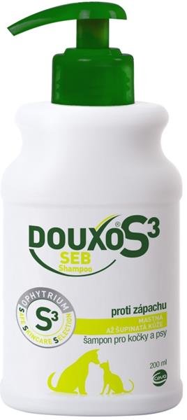 ZPŮSOB POUŽITÍ: Pouze pro vnější použití. Namočte zvíře teplou vodou a aplikujte DOUXO S3 SEB