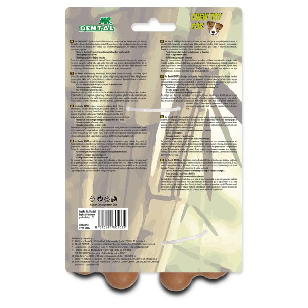 Mr.Dental bambones jsou novodobou zábavou pro všechny velikosti a plemena psů, která vyhledávají zábavu v podobě žvýkání. Jsou tvořeny z 90% z PP (polypropylen) + zbylých 10% je bambusové vlákno.