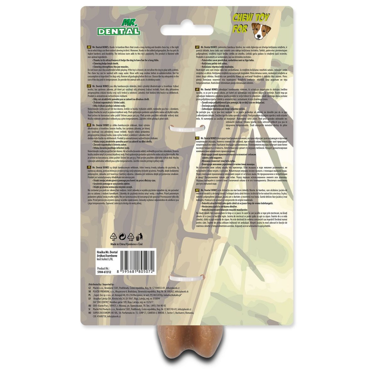 Mr.Dental bambones jsou novodobou zábavou pro všechny velikosti a plemena psů, která vyhledávají zábavu v podobě žvýkání. Jsou tvořeny z 90% z PP (polypropylen) + zbylých 10% je bambusové vlákno.