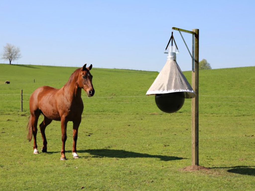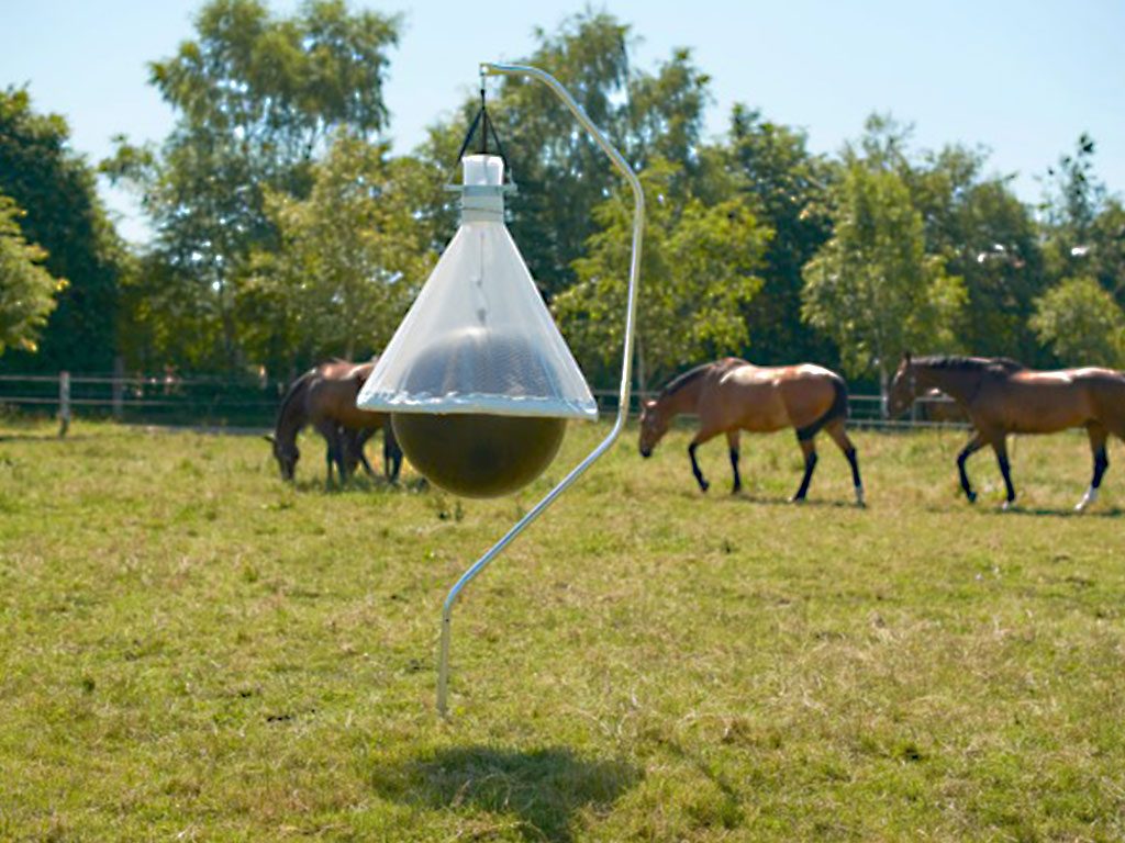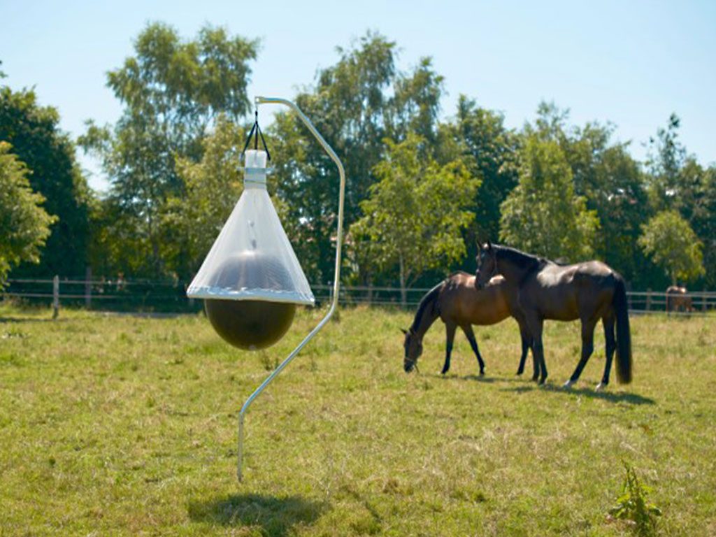 Když si ovád uvědomí že krev nejde odsát, instinktivně se vznese nahoru a nevyhnutelně vletí do pastí. každá past snižuje přítomnost ovádu až o 95% v bezprostřední blízkosti a má maximální efektivní rozmezí cca.5 000 m² absolutně netoxický a šetrný k životnímu prostředí snadná montáž a zavěšení na stromech apod. pomocí řetězu (dodáván v balení) 2 roky záruka na mechanické součásti průměr deštníku: cca. 88 cm balení obsahuje: balon vč. pumpičky a textilního pásu, textilní deštník, lankový drát pro roztahování deštníku, pozinkovaný držák kontejneru vč. popruhu a karabiny, 3 dílný textilní pás s karabinou a 100 cm řetězem pro zavěšení pasti, uživatelskou příručku