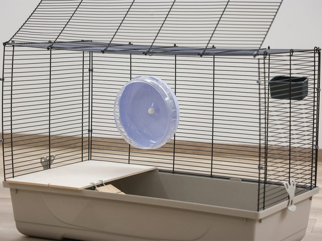 Posuvník na zadní straně umožňuje nastavení výšky, pokud kolotoč volně stojí. - včetně držáku pro uchycení na klec