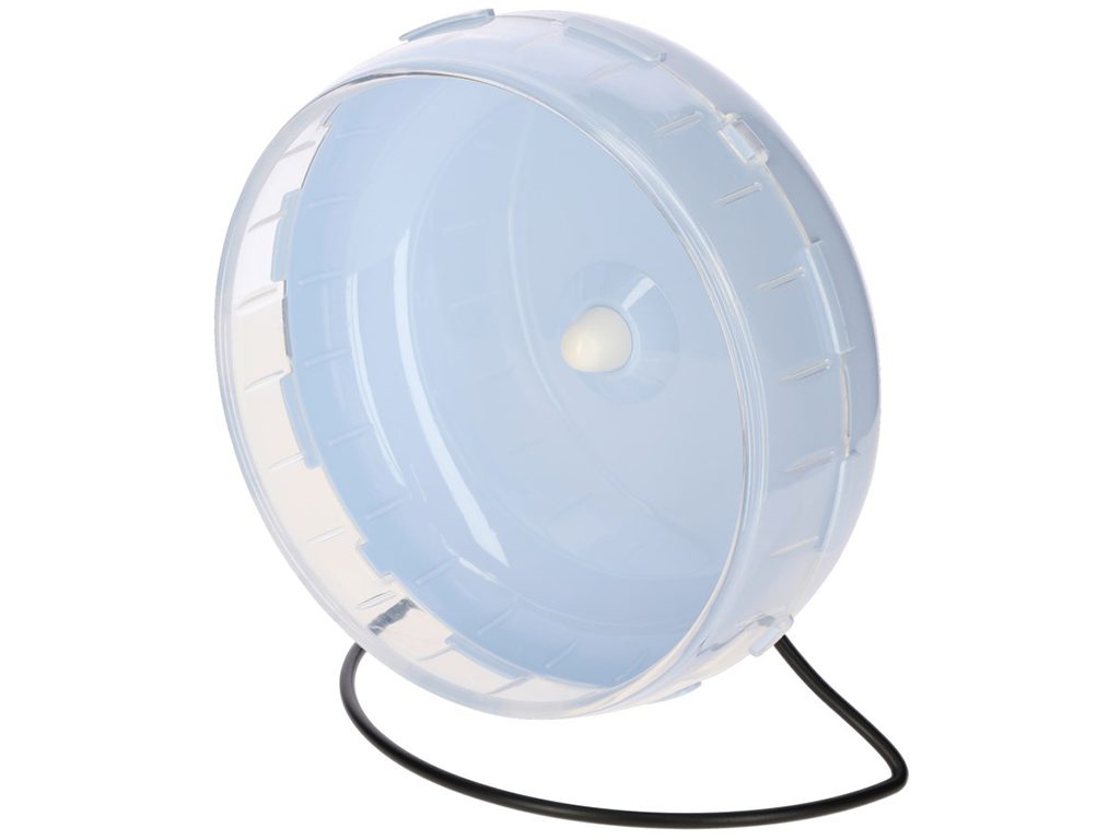 Plastové cvičné kolečko vhodné pro křečky či jiné malé hlodavce k zavěšení i volně stojící.
