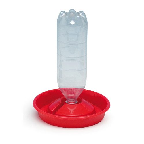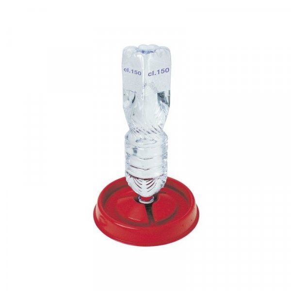 Plastový napájecí podstavec s nasazením na PET lahev. Napájecí talíř je vhodný pro kuřata a malou drůbež.