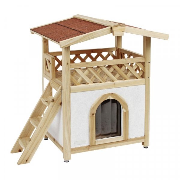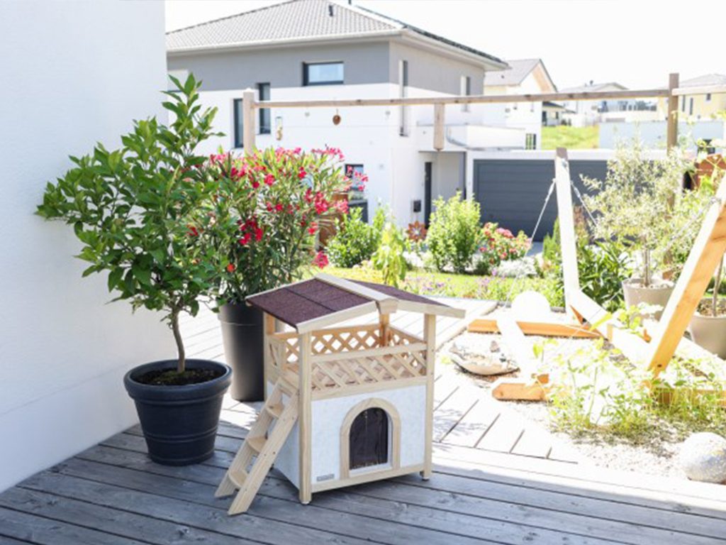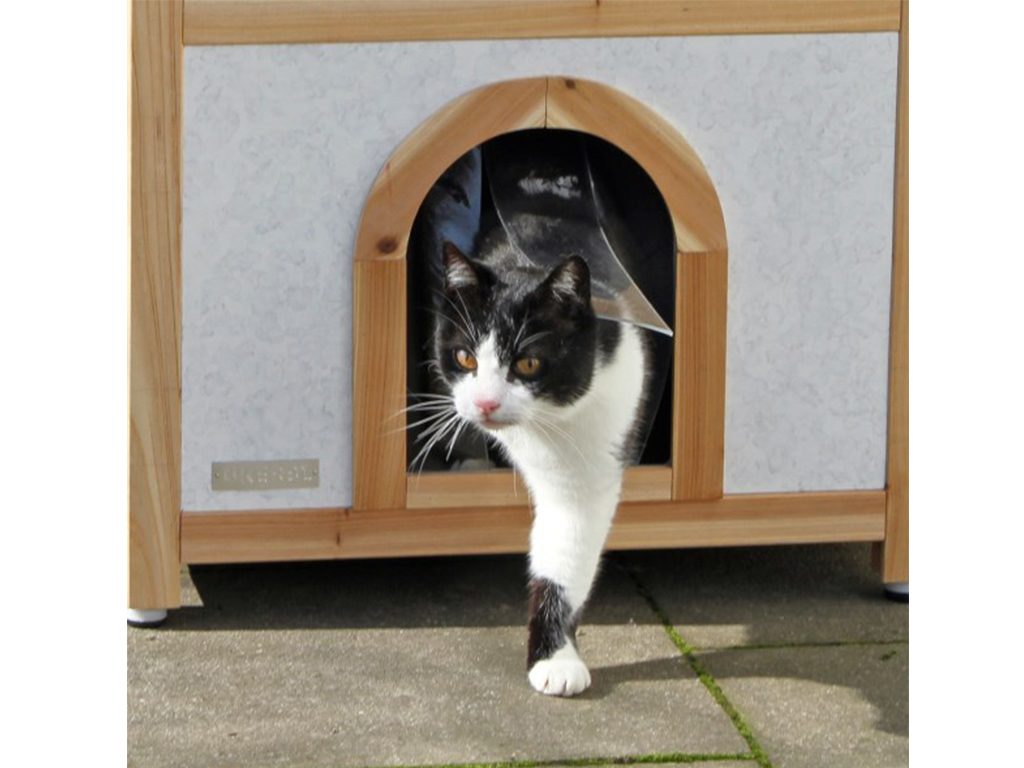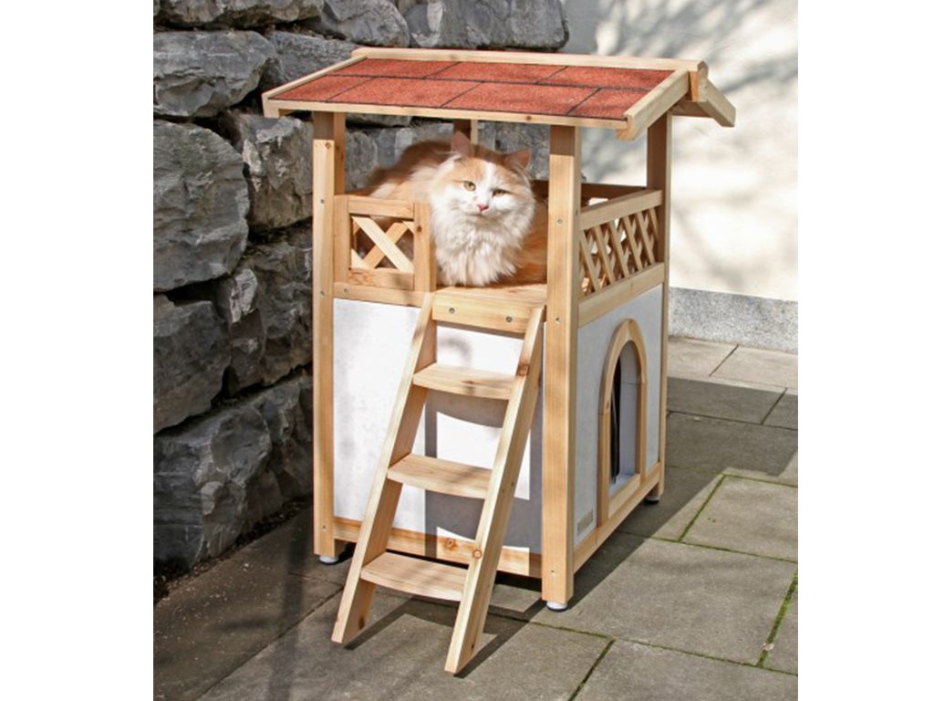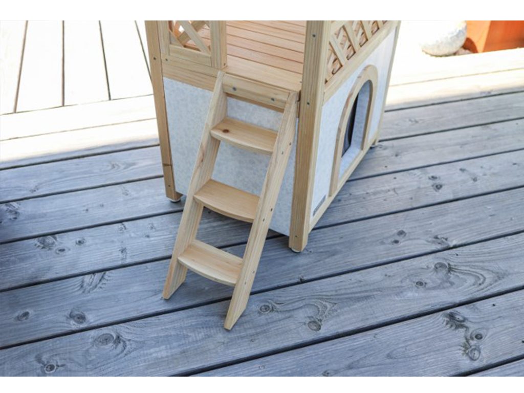 Zateplená kočičí bouda Tyrol Alpin s terasou je stylový pelíšek pro kočku vhodná pro celoroční využití, v zimě chrání před mrazy, v létě před horkem.