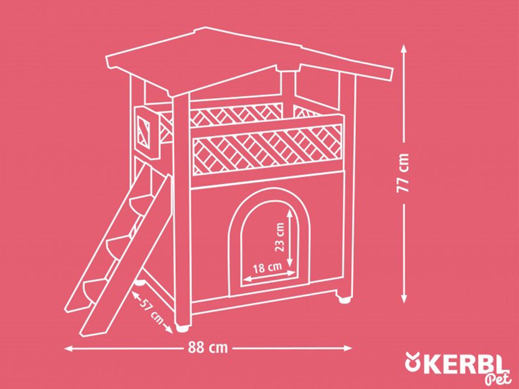 rozměry boudy bez schůdků: 67 x 57 x 77 cm (d x š x v)
