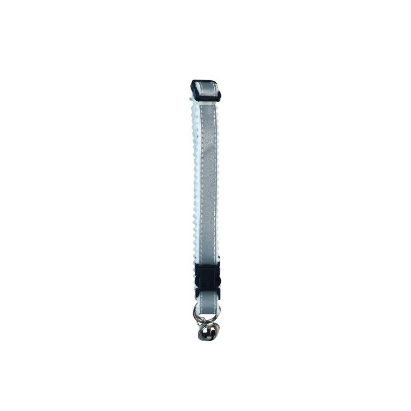 Reflexní obojek pro kočku osazený bezpečnostní sponou a rolničkou.